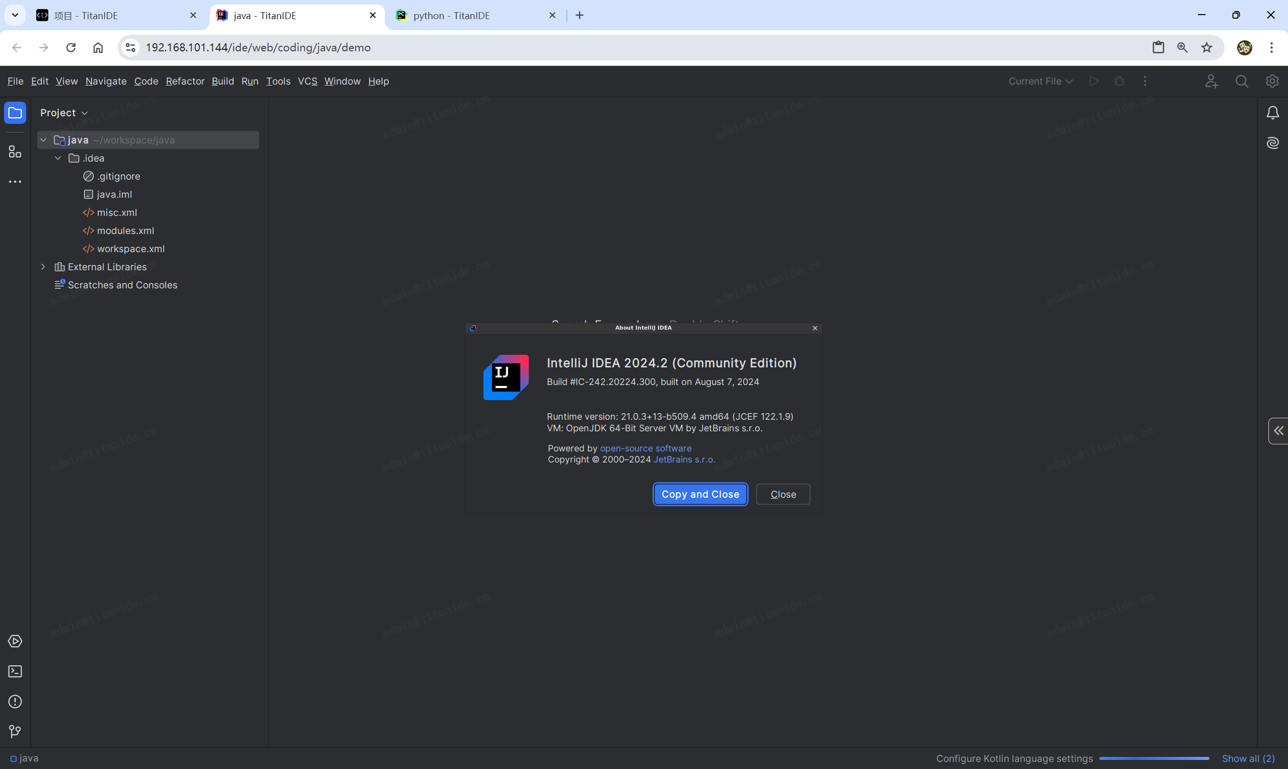 TitanIDE 是一款云端开发 IDE,以私有云方式部署于您企业的数据中心或是云,以浏览器作为客户端,以集约化共享云计算资源为底层依托,在云端运行的云原生集成开发环境,包括各种不同风格 IDE 内核实现编码和调试、开发空间和项目管理、应用端口映射、多租户、代码安全和审计、权限管理等功能。