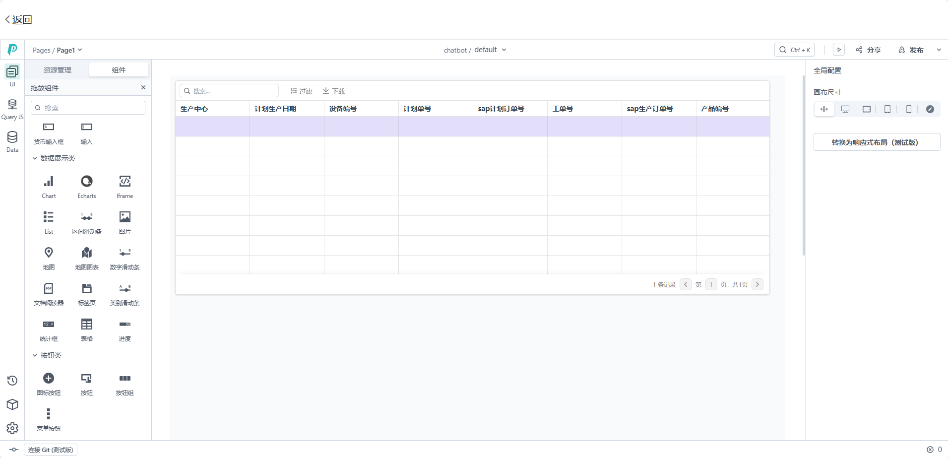 智能卡片内拥有非常直观和灵活的可视化建模工具,如表格、图表、表单等。可以根据对话需要拖放和配置各种组件,创建自定义表单、报告和图表等,无需重复编写复杂的代码。