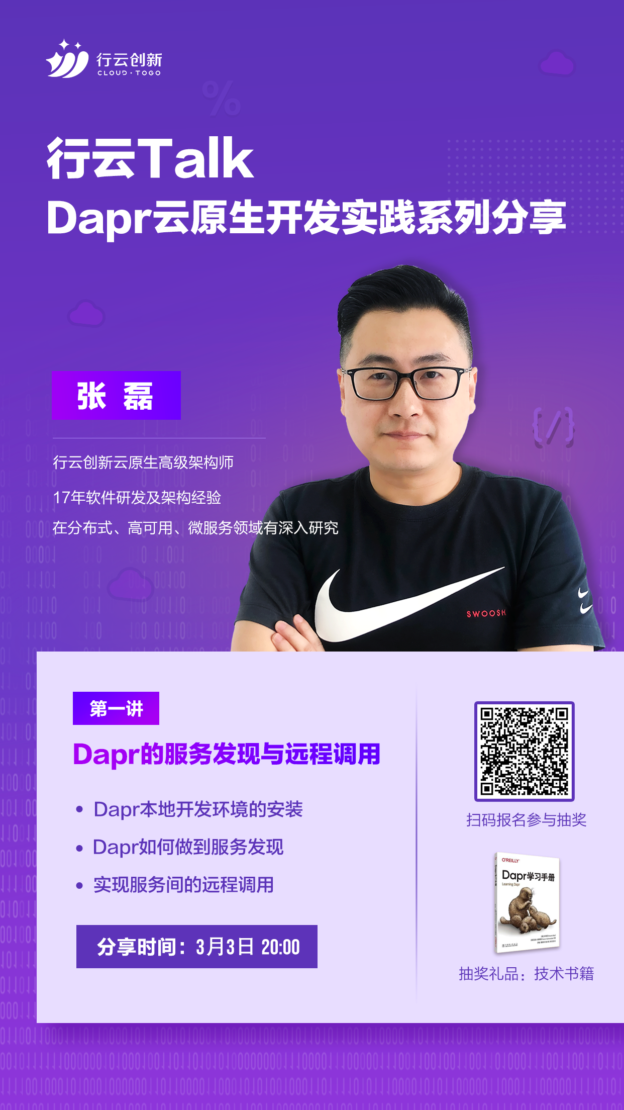 3月3日20:00,Dapr云原生开发实践系列第一期内容即将开讲,yabo.com创新云原生高级架构师张磊分享:Dapr的服务发现和远程调用,介绍Dapr本地开发环境的安装,Dapr如何做到服务发现以及实现服务间的远程调用。